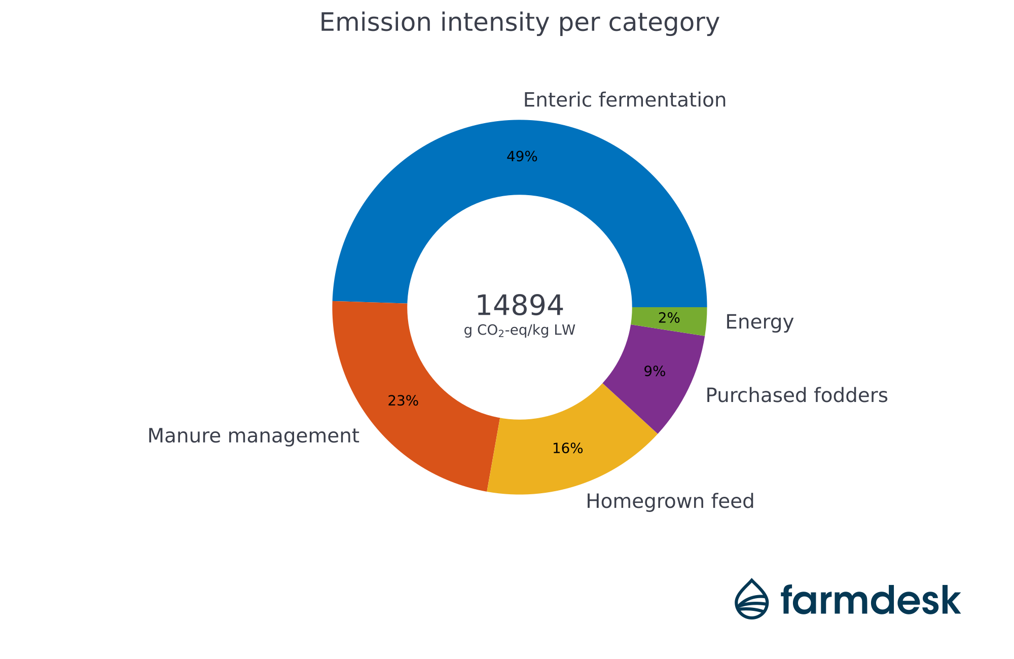 Within manure management, nitrous oxide emissions arise due to volatilization, and CO2 emissions are also attributed to the production of straw used as bedding. The category of homegrown feed includes nitrous oxide emissions resulting from the use of (artificial) fertilizers and CO2 emissions from the use of fuels during agricultural work. For purchased feed, CO2 emissions resulting from land use changes (such as deforestation, mainly for the production of soybean meal) and from the use of fossil fuels are included.