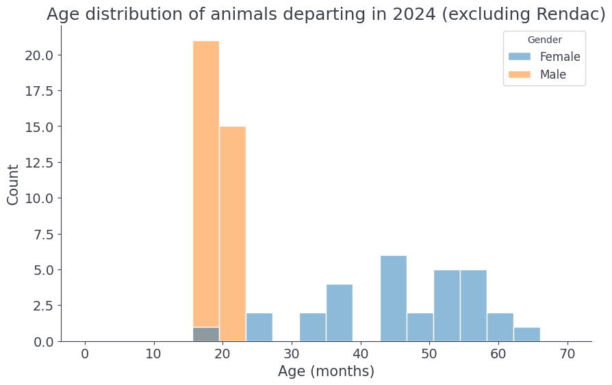 In 2024, a total of 36 bulls and 30 suckler cows were sent to the slaughterhouse, with an average live weight of 720 kg and 848 kg respectively. The average slaughter age of the bulls was around 20 months. Among suckler cows, there was a greater spread, depending on the number of times a cow had calved. The average age of suckler cows at slaughter was 46 months, with variations between 35 and 60 months.